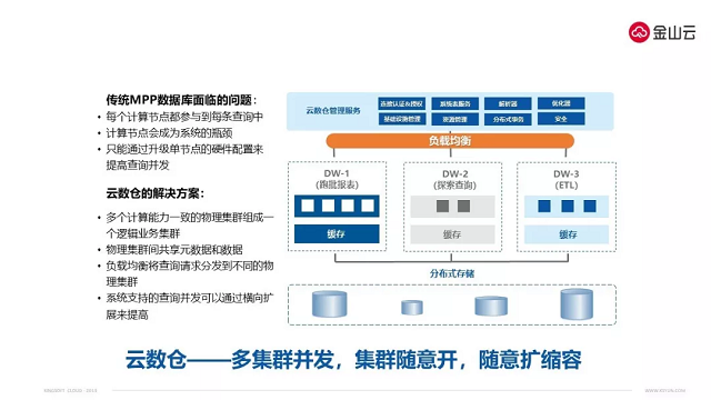 金山云KingStack云数据仓库服务,通过将灵活的架构在云平台上,充分利用云计算的优势进行大数据处理。解决了传统数据仓库一体机、MPP数据仓库、开源Hadoop方案, 扩展性差、规模受限、并发弱、学习成本高、价格昂贵的问题。为客户提供可以按需扩展的大规模分布式数据仓库系统,满足金融行业大数据量、高并发、复杂金融分析查询的场景需求。