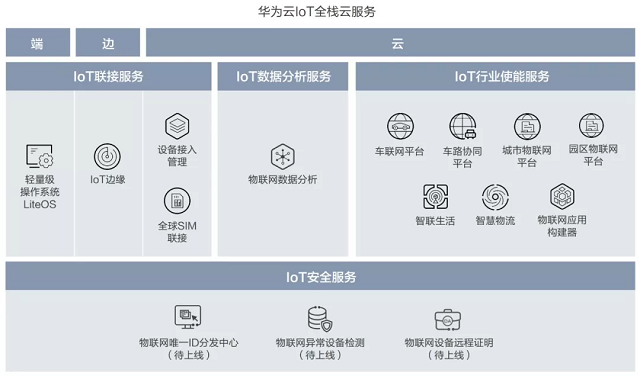 2019年,华为云全球首发AIoT全栈云服务,覆盖端、边、管、云、行业,提供低功耗、低时延、高安全、高可信、高并发的极简联接服务,预置行业数据模型的一站式物联网数据分析服务,丰富的行业使能套件及端到端安全服务,致力于“联万物、+智能、为行业”,聚合产业生态,使能客户商业成功。
