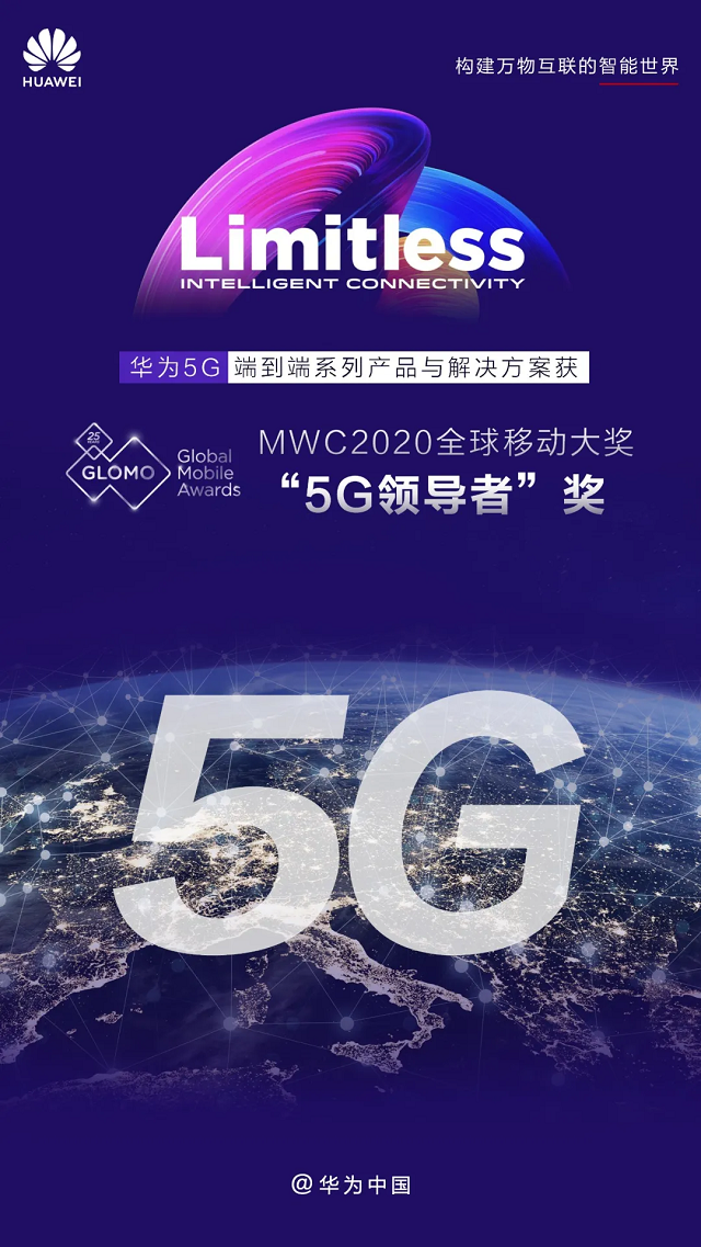 华为 5G 端到端系列产品与解决方案荣获 GSMA GLOMO “5G领导力奖”