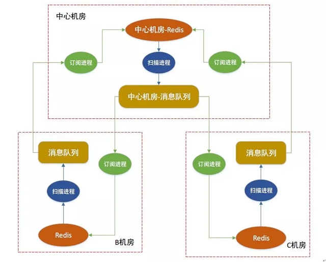 · 订阅进程:中心机房要订阅所有其它非中心机房的消息队列,汇总数据;非中心机房只要订阅中心机房的消息队列就可以拿到全量数据了。