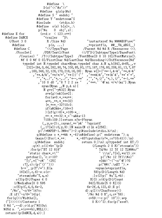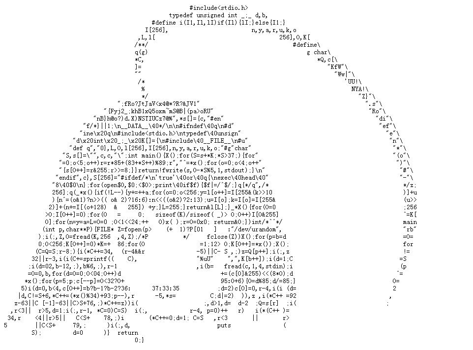 大家可能一直觉得代码简洁易懂才是我们所膜拜的,但恰恰有个组织却在比赛谁的代码可读性更差……它就是IOCCC…… 首先科普下IOCCC,其英文全称是“The International Obfuscated C Code Contest”,中文名为“国际C语言混乱代码大赛”。IOCCC是一项国际编程赛事,从1984年开始,每年举办一次(1997年、1999年、2002年、2003年和2006年例外),比赛目的是写出最有创意的最让人难以理解的C语言代码,并且要求代码限制在4 kilobytes以内。