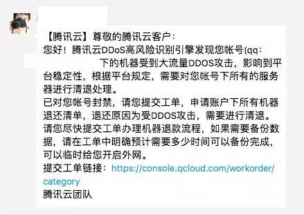 腾讯云的用户和潜在用户可能需要知道腾讯云有这么一条规定 ( 昨天知加被DDos攻击了一分钟,1.5~2G的流量,附图是腾讯云发送的短信内容。给贵云添麻烦了真是对不起。