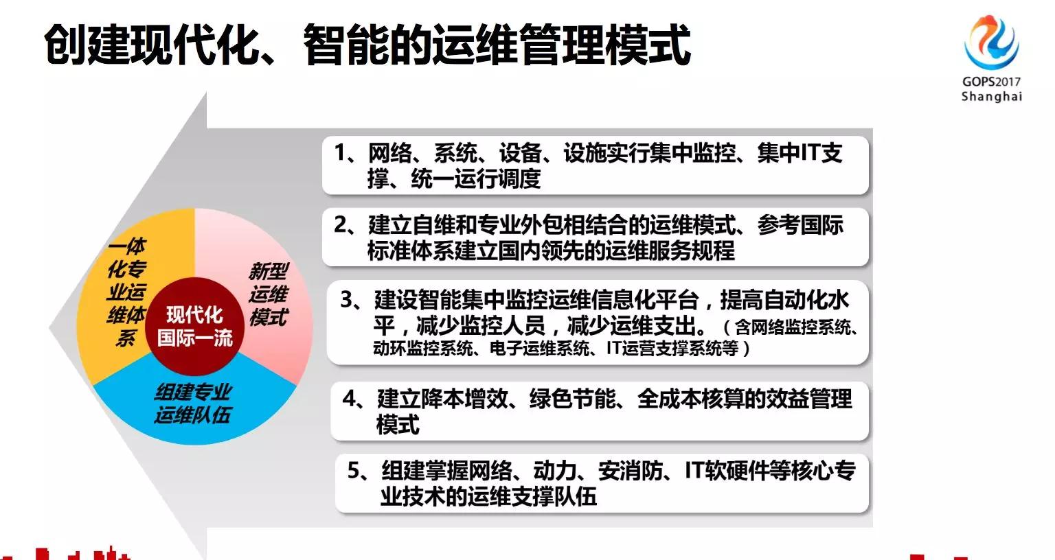 我们希望构建现代化和智能的运维管理模式,主要是以下5个方面,如下图:
