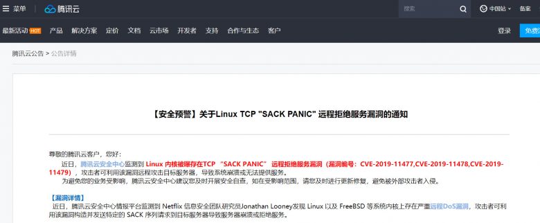 预警 | Linux 爆 TCP “SACK Panic” 漏洞!N 家中招:AWS、阿里云、腾讯云、华为云、RedHat等