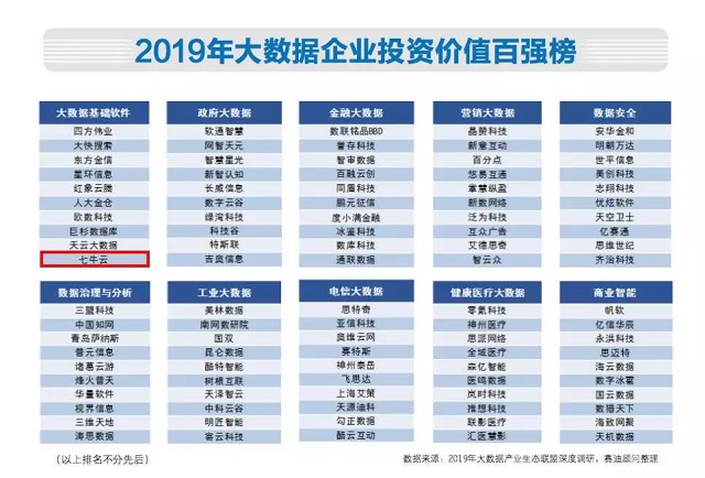 七牛云入围「2019 年中国大数据企业投资价值百强」