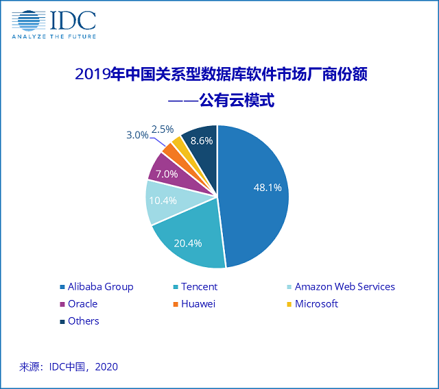 2019 公有云关系型数据库市场 TOP2:阿里云 48.1% ,腾讯云 20.4%