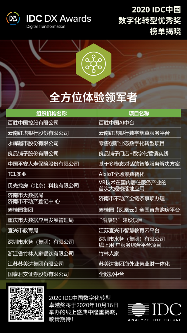 2020 IDC 中国数字化转型 获奖榜单揭晓(一)