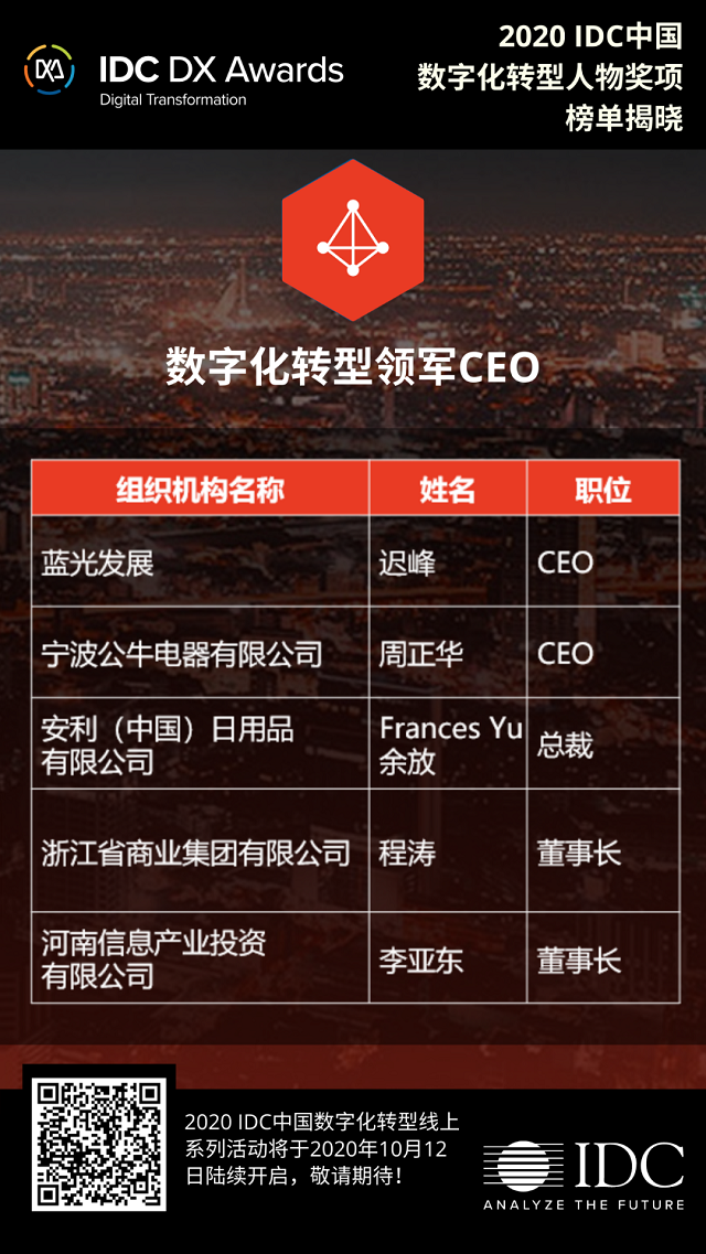 2020 IDC 中国数字化转型获奖榜单揭晓(四):数字化转型领军 CEO