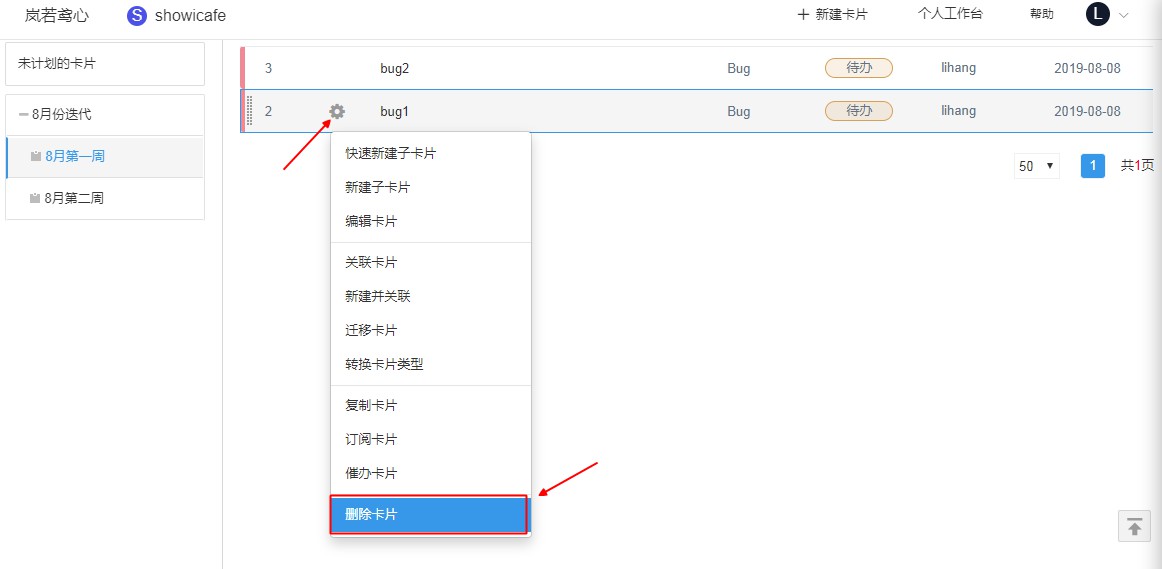 如果不小心将卡片误删,可以联系项目管理员进行还原