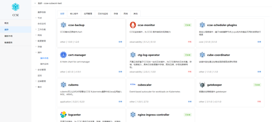插件市场展示的是CCSE提供的插件,用于丰富集群的能力,满足用户特定的功能需求。