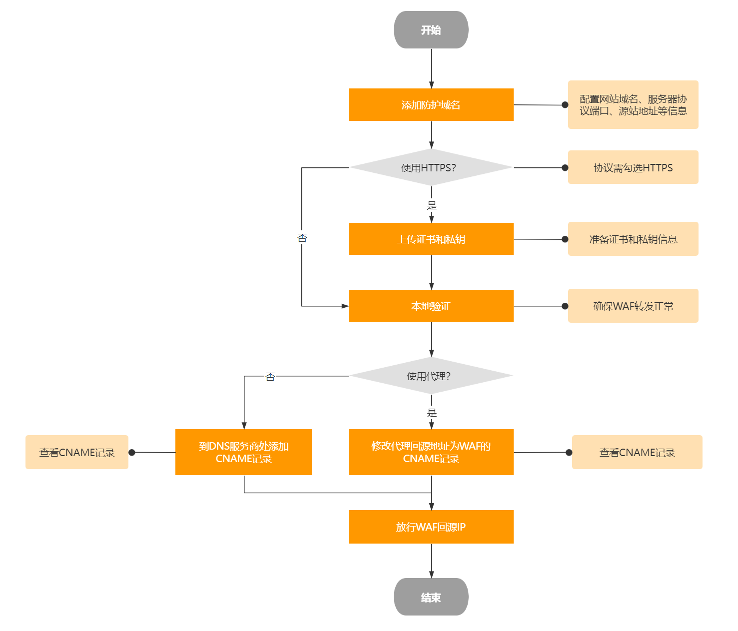 开通云WAF实例后,需要将您需要防护的网站域名接入WAF,使网站的访问流量全部流转到WAF进行检测并转发,实现恶意流量的拦截。