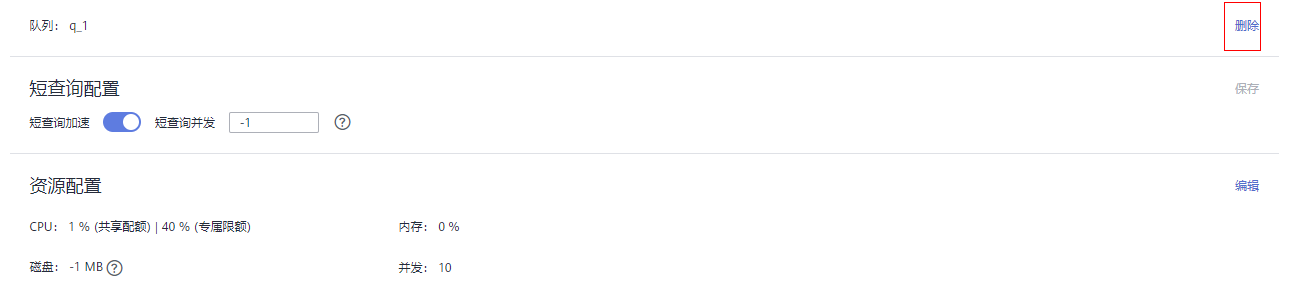 - 在左侧“工作负载队列”中单击需要删除的队列名称。