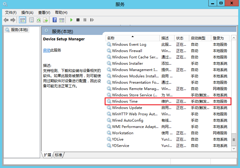 3. 在服务窗口中,双击打开 Windows Time。如下图所示: