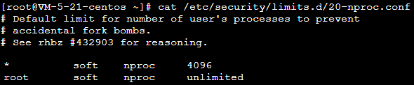 3. 参考 CentOS 6之前版本 步骤,修改 /etc/security/limits.d/20-nproc.conf 文件,建议修改前进行文件备份。