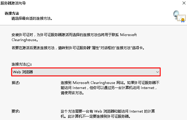 5. 在连接方法设置中,本文选择 Web 浏览器,并单击下一步。如下图所示: