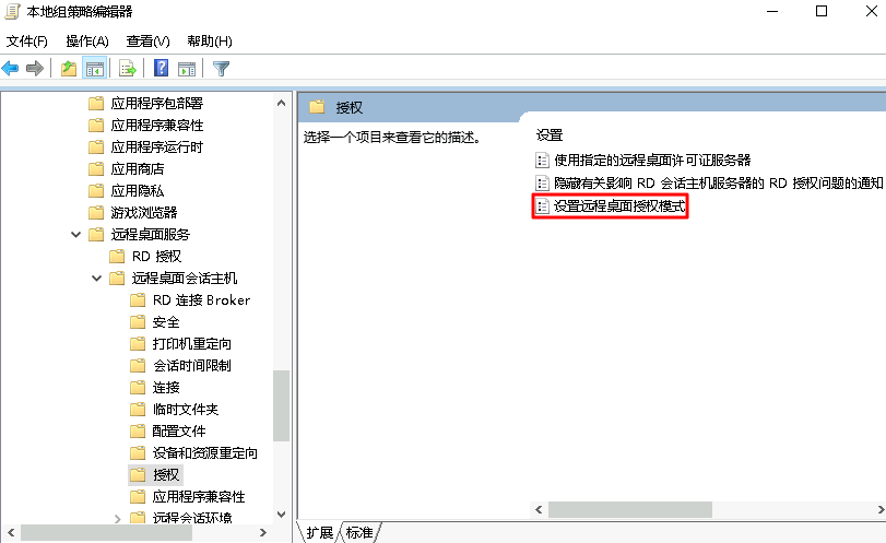 7. 双击打开设置远程桌面授权模式。如下图所示: