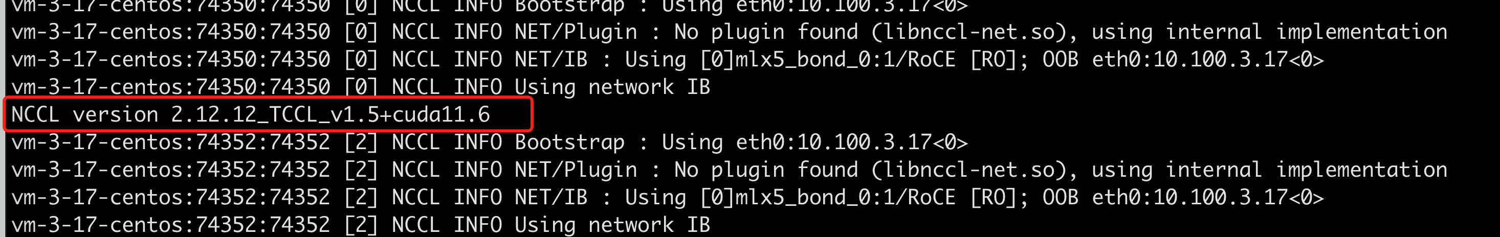 export NCCL_DEBUG=INFOexport NCCL_SOCKET_IFNAME=eth0export NCCL_IB_GID_INDEX=3export NCCL_IB_DISABLE=0export NCCL_IB_HCA=mlx5_bond_0,mlx5_bond_1,mlx5_bond_2,mlx5_bond_3,mlx5_bond_4,mlx5_bond_5,mlx5_bond_6,mlx5_bond_7export NCCL_NET_GDR_LEVEL=2export NCCL_IB_QPS_PER_CONNECTION=4export NCCL_IB_TC=160export NCCL_IB_TIMEOUT=22export NCCL_PXN_DISABLE=0export TCCL_TOPO_AFFINITY=4
