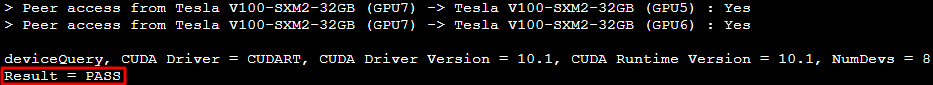 参见 安装 NVIDIA Tesla 驱动 进行 NVIDIA GPU V100 显卡驱动安装。安装成功后结果如下图所示: