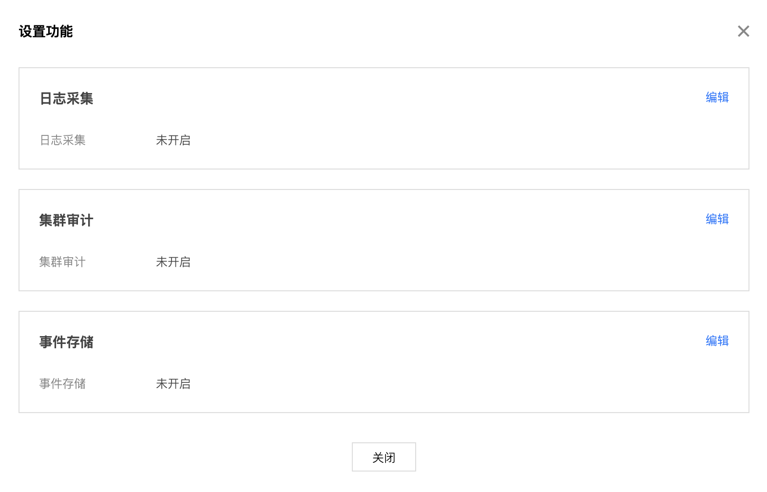 3. 在弹出的“设置功能”窗口,单击“集群审计”功能右侧的编辑。