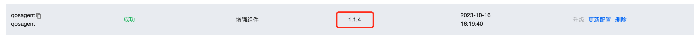 1. 在组件管理页面,查看 QoS Agent 组件版本。确保 QoS Agent 组件版本在1.1.4及以上。如果版本低于此要求,请单击组件右侧的升级进行升级。如下图所示:
