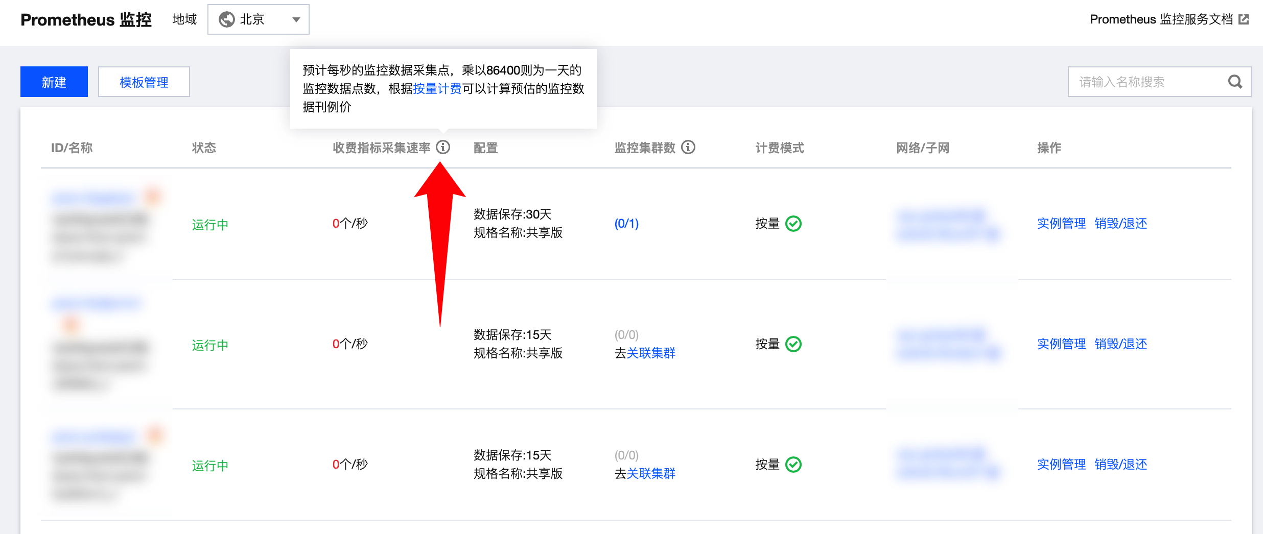 TMP 上线了“收费指标采集速率”的能力,您可以用该数值估算监控实例/集群/采集对象/指标等多个维度的预估费用: