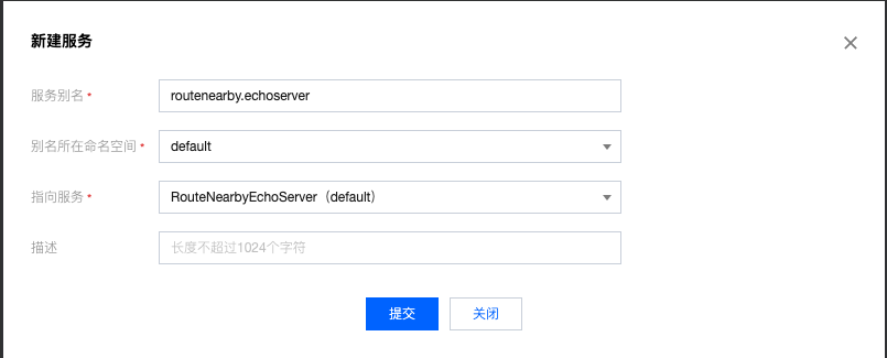 10. 为 RouteNearbyEchoServer 创建服务别名 routenearby.echoserver。