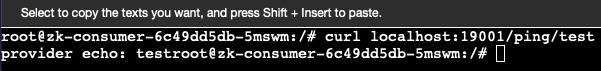 登录 Consumer 服务所在的 Pod,执行 curl 命令调用 Consumer 接口访问 Provider 服务。