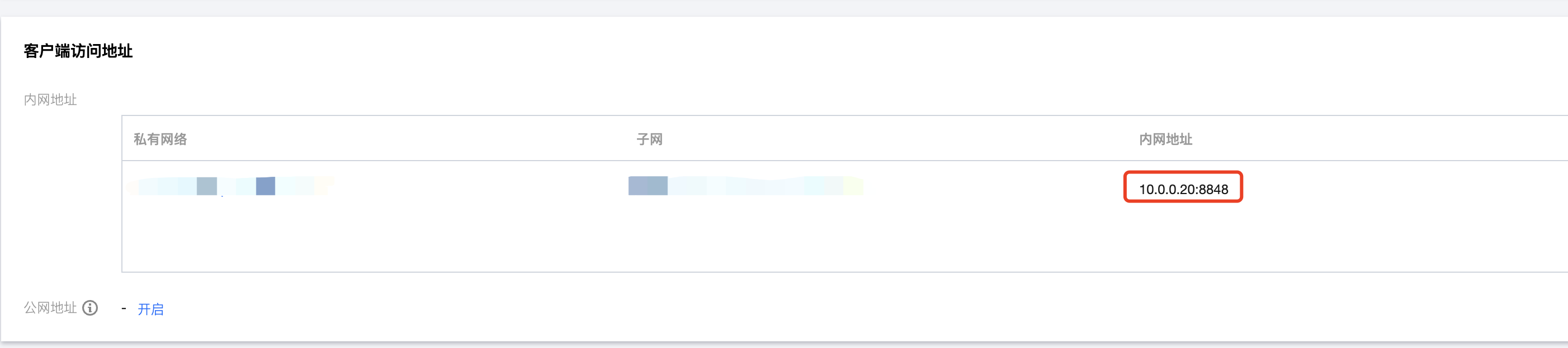 1. 登录 TSE 控制台,新建一个 nacos 实例,并获取客户端访问地址。详细操作请参见 引擎管理。