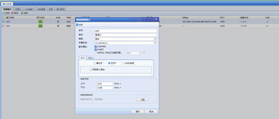 [线路带宽]:“上行\下行”设置1024Mbps。