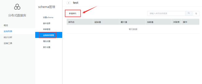 2. 在schema基本信息页面,点选“全局序列管理”菜单