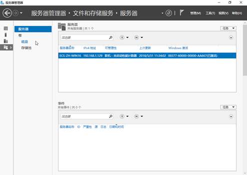 进入“服务器”页面,如下图所示。