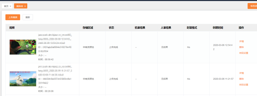 5、如果您配置了“录制后进行处理”的媒体处理方式,那么录制后将根据您设置的配置参数,进行转码、截首帧,添加水印模板等,处理后的文件存储于云点播平台。