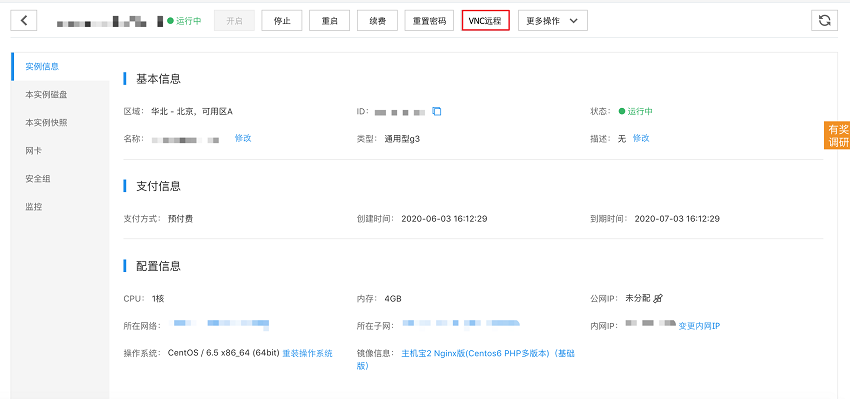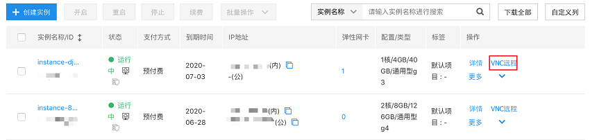在“操作”列,选择“VNC远程”,进入VNC窗口。
