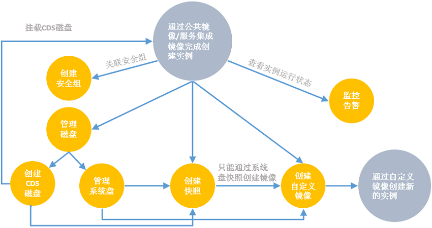 第一次通过公共镜像或服务集成镜像完成创建BCC实例后,您可以完成更多与实例有关的拓展操作,通过实例或快照创建自定义镜像。