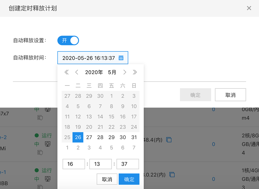 - 完成设定后,您可在右侧操作列,单击 “更多 - 实例设置 - 定时释放” 查看当前设定的定时释放时间。