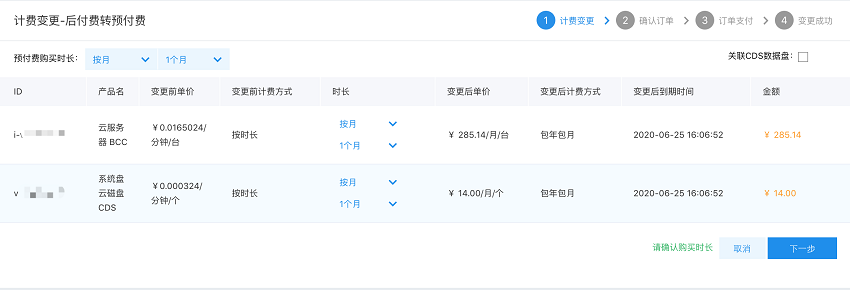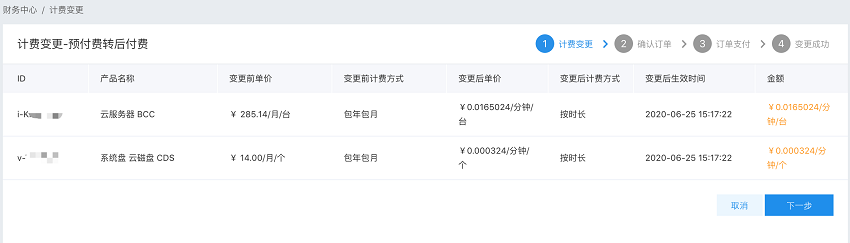 - 支付成功后,计费方式变更为后付费方式。