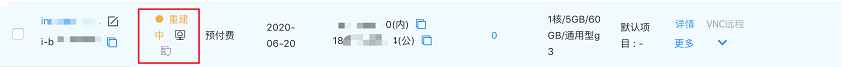 点击确定后,实例状态将会变成 重建中。