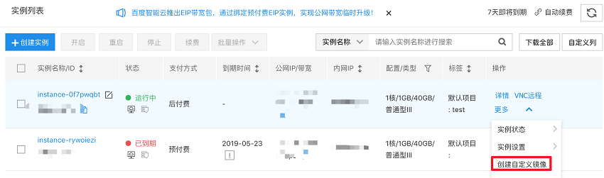 2.在操作栏的 更多,点击 创建自定义镜像,弹出 创建自定义镜像 窗口。