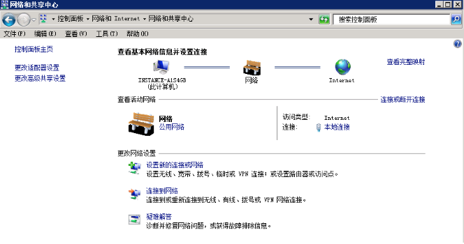 在Windows系统上依次选择【开始 】> 【控制面板】>【网络和Internet】>【网络和共享中心】,如图所示