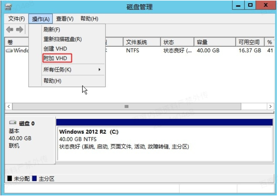 - 通过“磁盘管理”工具,附加生成的VHD镜像文件(因为需要安装驱动,所以以非只读形式附加);