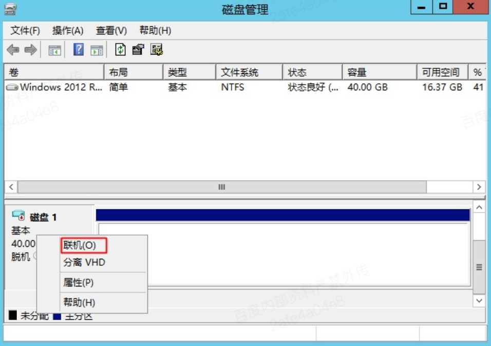 - 如果挂载的磁盘为“脱机”状态,先执行联机操作;