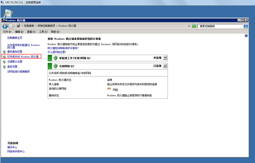 3.点击打开或关闭防火墙