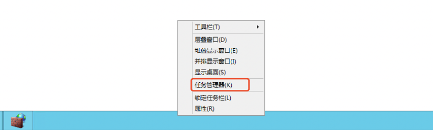 - 鼠标右键点击任务栏,点击"任务管理器"。