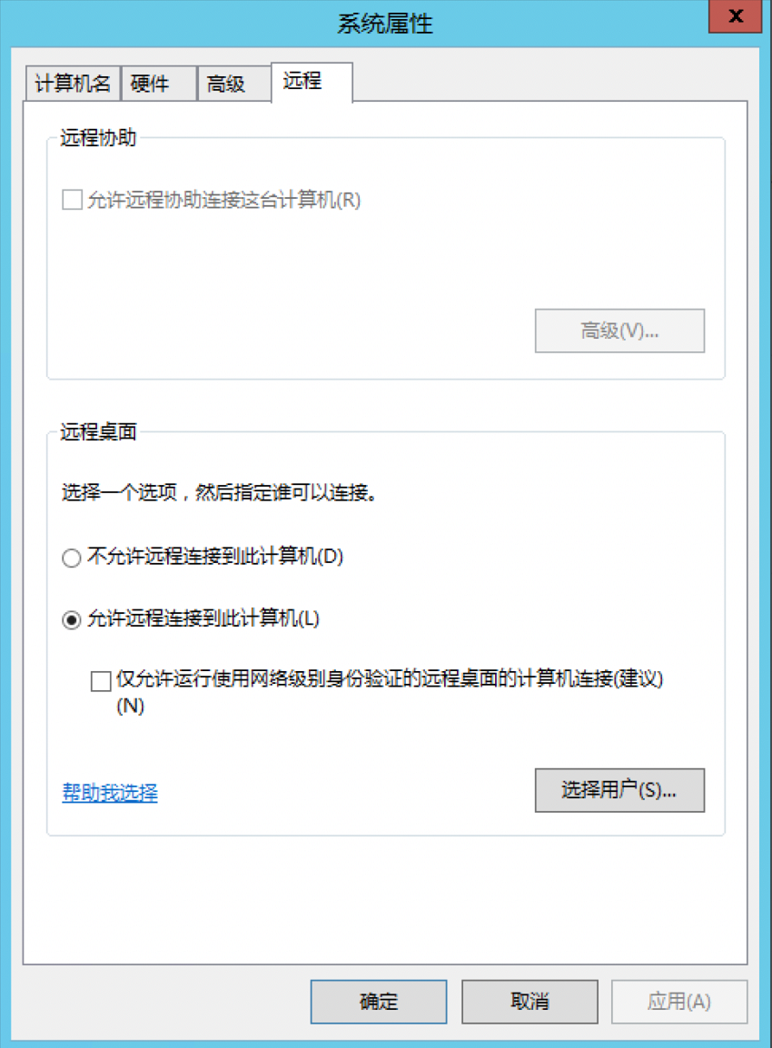- 点击远程设置,选择允许远程连接到此服务器->选择用户,添加Administrator,或是可以是其他非管理员用户,最后确定保存。