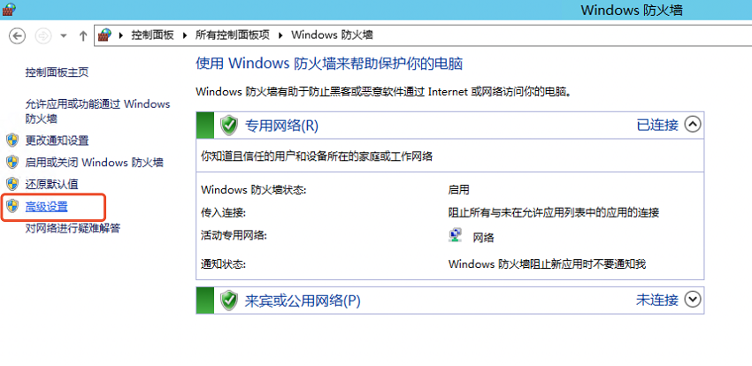 如果未更改过远程连接默认端口,需要检查服务器的3389端口是否已开通,如果未开通,需要添加防火墙出入站规则,放行3389端口,以Windows2012为例,可按照如下步骤排查: