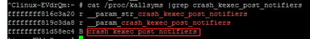 a) 执行以下命令,查询弹性云主机是否支持"crash_kexec_post_notifiers"函数,如下图所示。