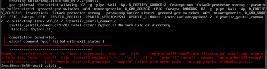 安装过程中,系统报错"command ´gcc´ failed with exit status 1",如下图所示。但是,在用pip安装Python库软件之前,确认已经使用yum命令安装了gcc。