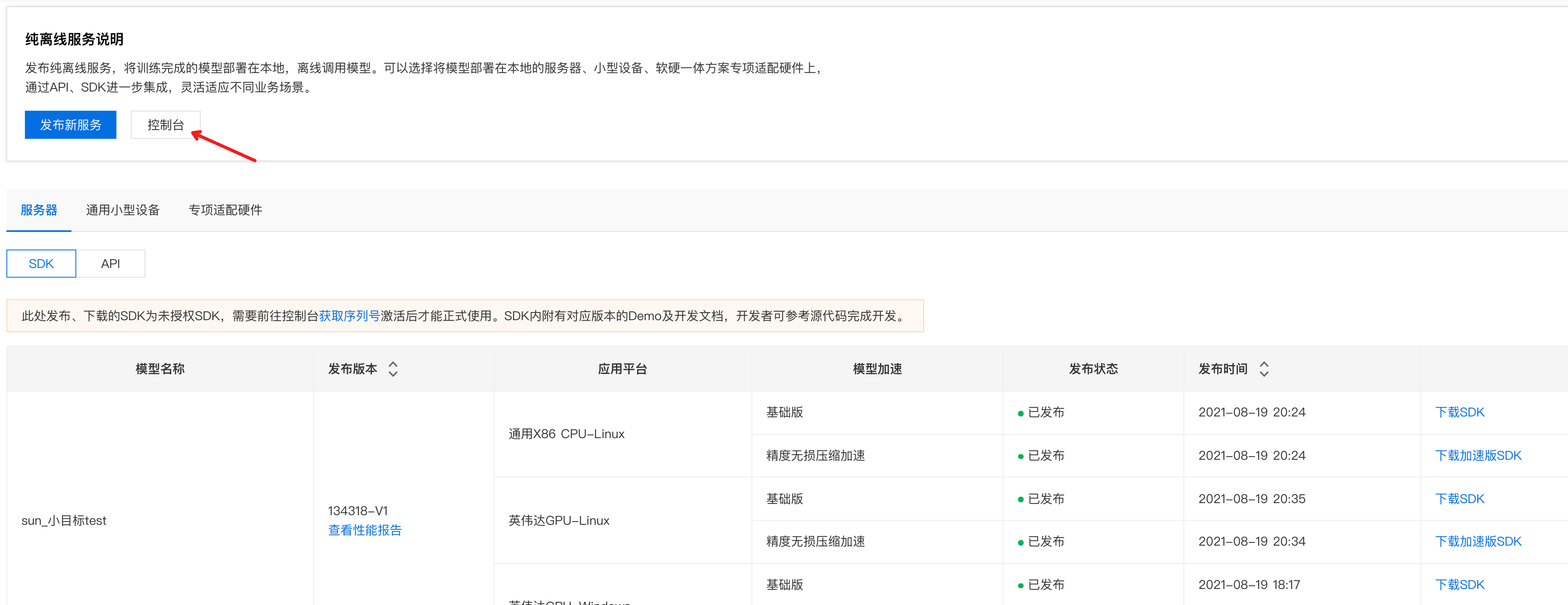 2021.05.14 | 1.3.0 | 新增视频流接入支持;展示已发布模型性能评估报告 |