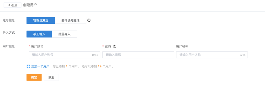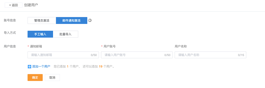步骤 5 填写用户的”通知邮箱“和“用户账号“,可批量导入;