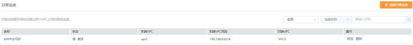 步骤 2 点击“网络功能”,选择“对等连接”,进入“对等连接”页面: